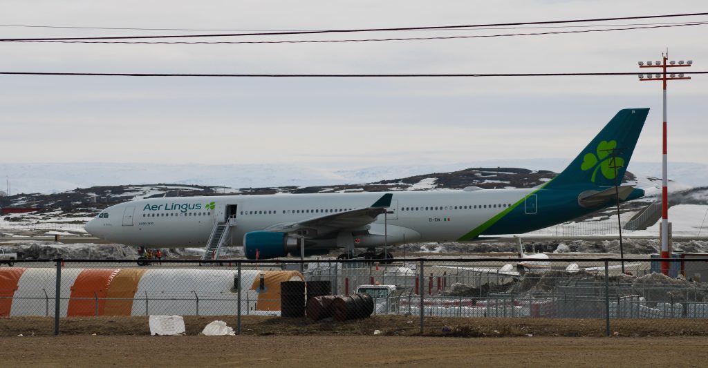An Aer Lingus flight from Ireland to California was forced to land in Iqaluit Tuesday due to an on-board medical emergency, Department of Economic Development spokesperson Weichien Chan confirmed. One person was taken to hospital. The flight, which departed from Dublin and was bound for San Francisco, was scheduled to resume after refueling. (Photo by David Lochead)