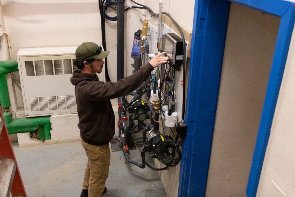 Peter Martel, Iqaluit’s water treatment plant operator, works with the plant’s s::can water monitoring system. Iqaluit is the first city in North America to use s::can, which provides staff with real-time information on the city’s water quality. (Photo by Jeff Pelletier)