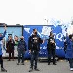 ‘Things have to change now!’ education workers chant outside the Kativik school board office in Montreal