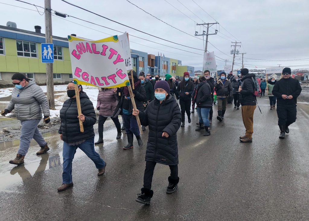Kuujjuaq teachers and support workers participate in a region-wide school strike on April 28. (File photo by Isabelle Dubois)