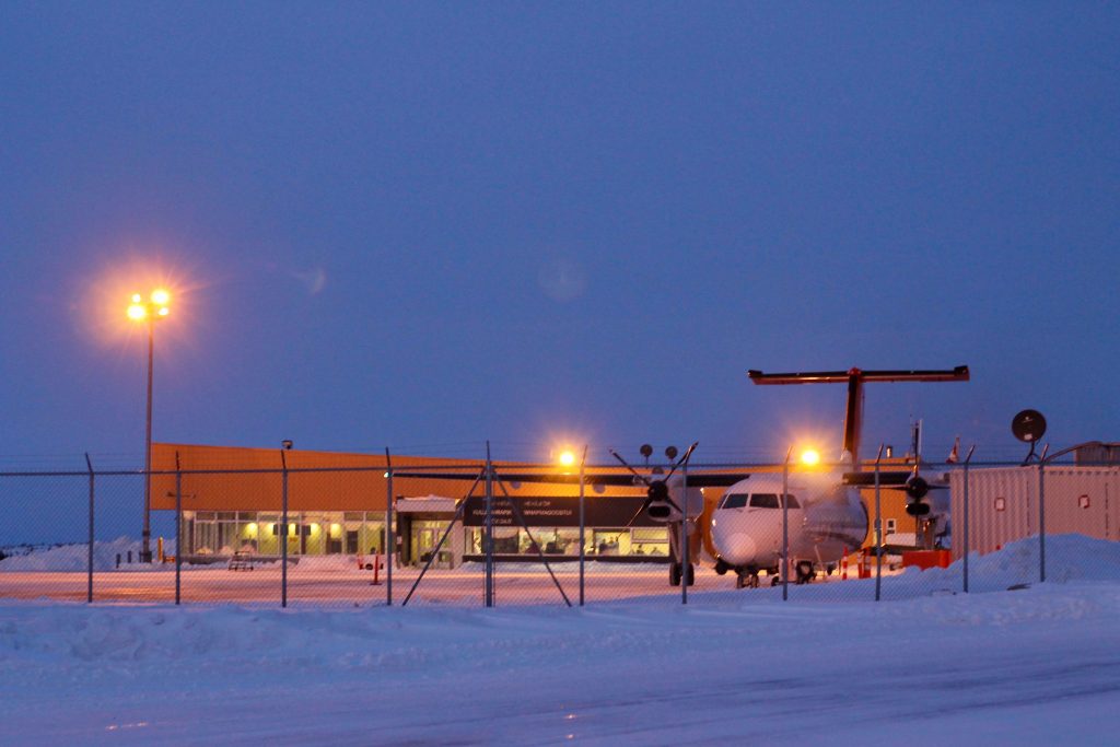 A Canadian North flight takes off from Kuujjuaq late in the afternoon of Dec. 16. (Photo by Allen Gordon)