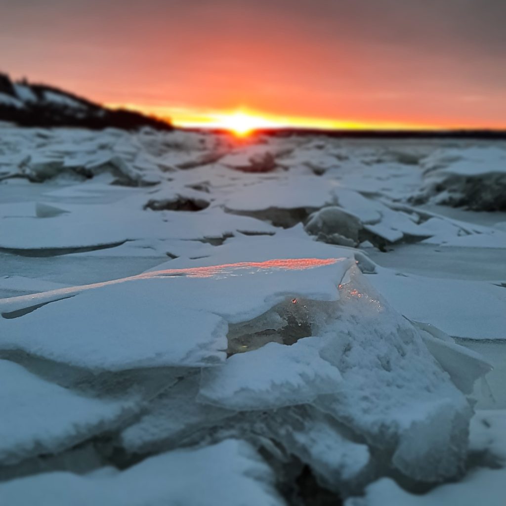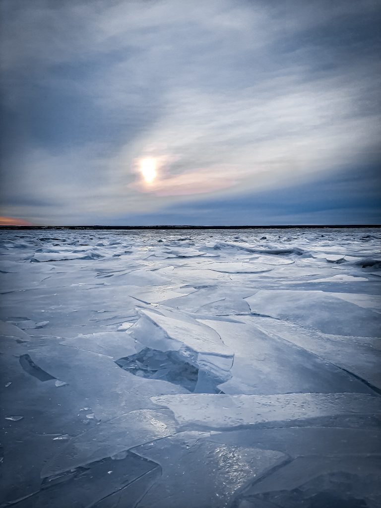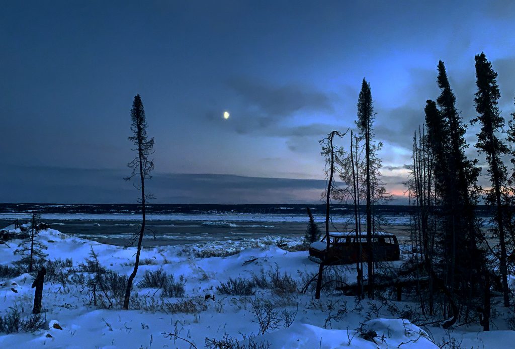 The first layer of ice is seen on the Koksoak River near Kuujjuaq on Nov. 5. The river’s ice has since thickened and become coated with snow. (Photo by Maxence Chavanne)
