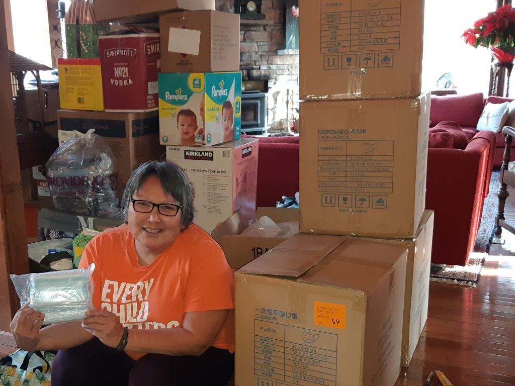 Tauni Sheldon has collected more than 16,000 masks and other protective gear that she plans to ship to Nunavik before Christmas. (Photo courtesy of T. Sheldon)