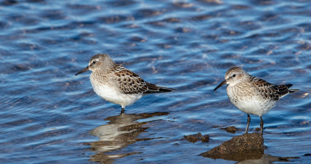 Clare Kines of Arctic Bay spotted these white-rumped sandpipers on Aug. 9 at Kahula Lake, beyond Nanisivik. “These are young birds, hatched this summer,” he writes. “The adults have already left for the south. Incredible to think that they already have the map for their journey, the first they will make, imprinted in their brains.” (Photo by Clare Kines)