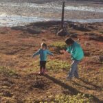 Three-year-old Avaala Saddler helps his father, Coner Saddler, paint a boat on Monday morning in Rankin Inlet. Saddler started building a new cabin for his boat in front of the family home on Aug. 3. With the new cabin, he hopes to go out boating with Avaala on the weekend. (Photo by Arty Sarkisian)