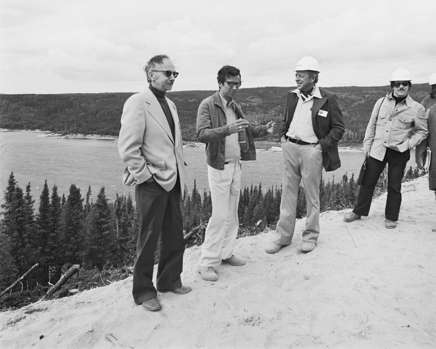 Former Quebec premier Robert Bourassa, near the James Bay area, discussing development plans. (Photo courtesy of Hydro-Québec)