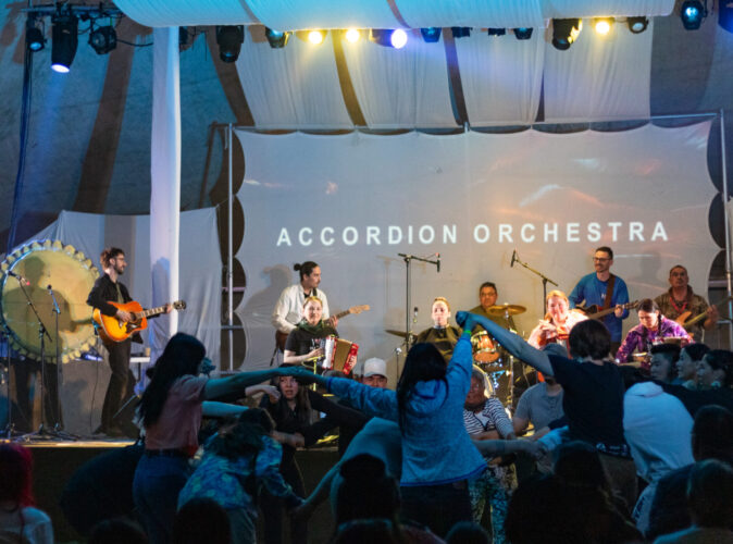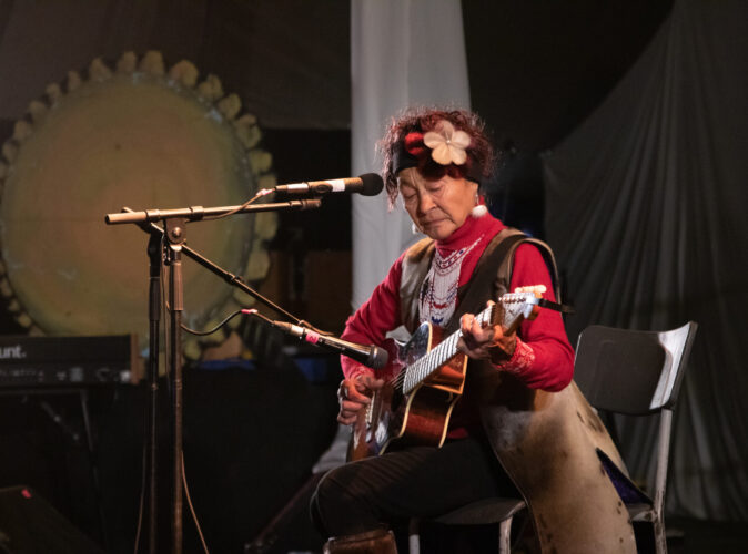 Sume Tribute, a politically charged Greenlandic hard rock band that formed in 1972 as a call for Indigenous sovereignty, brings the audience to its feet Saturday night. After the set, the audience cried out ‘ammalu’ and ‘atiluu’, Inuktitut for ‘again’ and ‘more.’ (Photo by Daron Letts)