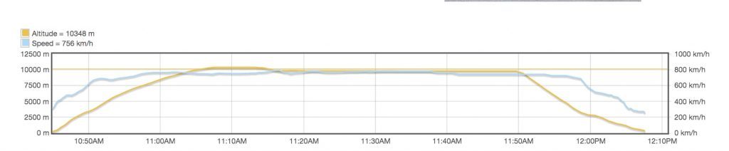This graph shows the speed and altitude of Air Inuit’s EH-732 flight on Aug. 24. and its upward ascent at shortly after 11 a.m. (Graph courtesy of Flightaware.com).