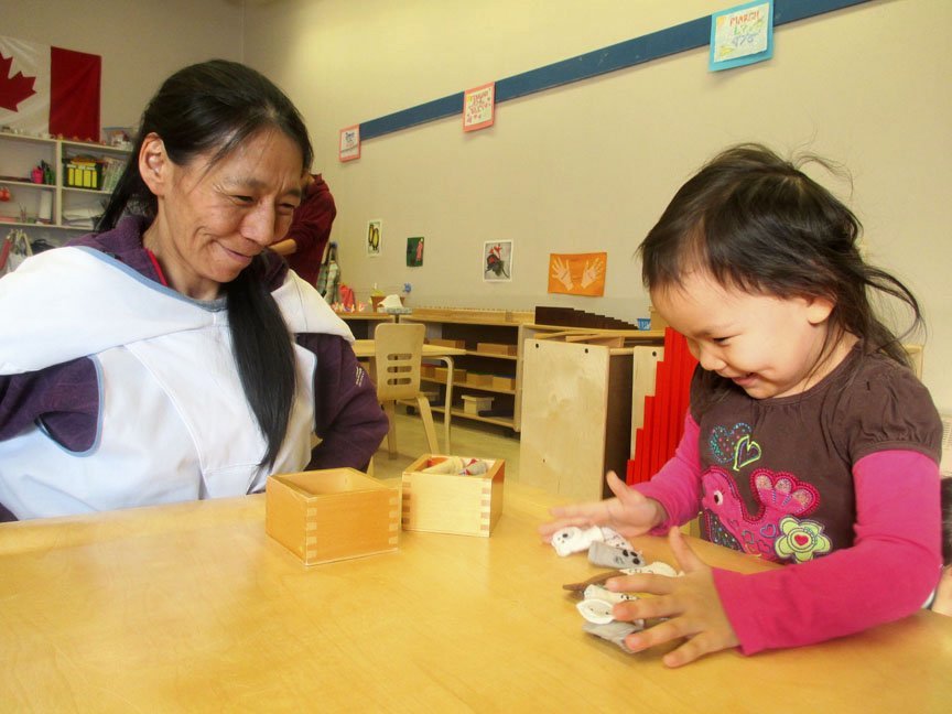 Kippomee’s approach to early childhood education is based on Inuit Qaujimajatuqangit traditional knowledge—in particular Pilimmaksarniq, the principle of allowing children to learn at their own pace—and the educational principles of the Italian educator Maria Montessori.