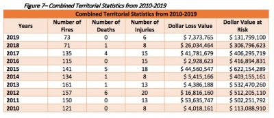 In 2019, the reported dollar loss value of fires throughout the territory was still more than $7.3 million.