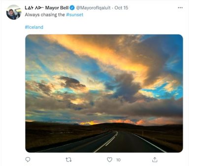 A post on Kenny Bell’s Twitter page from Oct. 15, 2022 shows the former mayor in Iceland (Screenshot/Twitter)