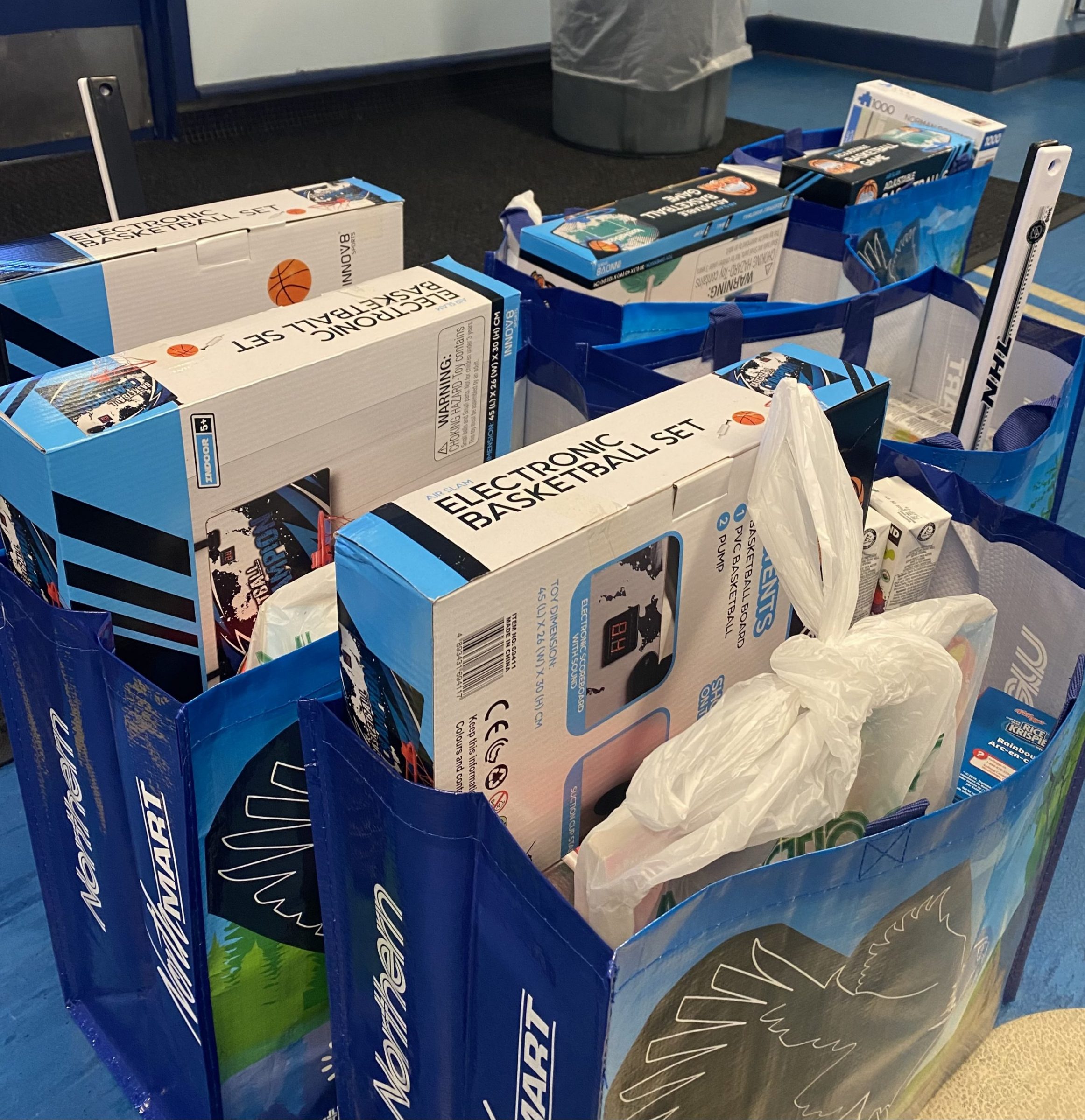 Pond Inlet’s recreation department is distributing these bags to kids who are self-isolating due to COVID-19. Each contains a door-hanging basketball net, juice boxes, mini hockey sticks and other activities for children to play with while they are isolating. (Photo courtesy of Theresa Dalueg)