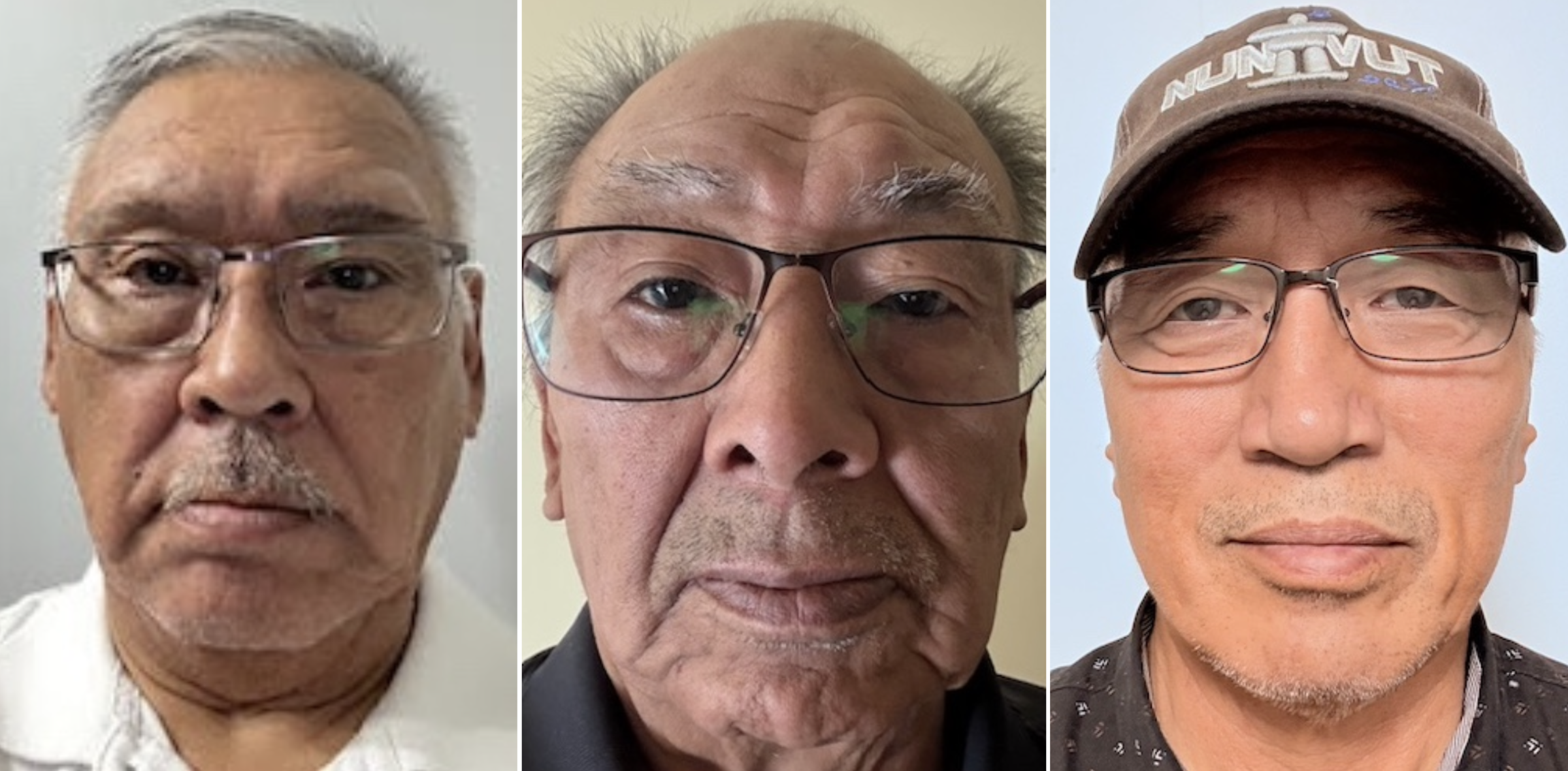 Stanley Anablak, left, Simon Kuliktana and Bobby Anavilok are the three candidates running in Kugluktuk for a seat in the Nunavut legislative assembly. (Photos courtesy of Elections Nunavut)