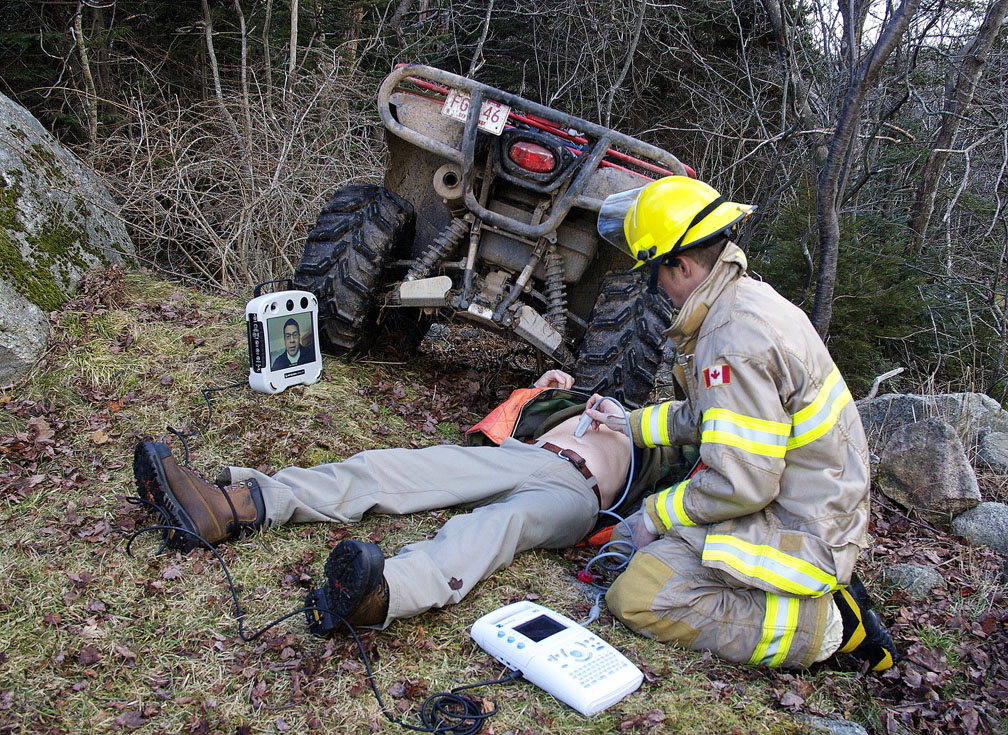 Remote presence technology enables a medic to perform an ultrasound at the scene of an accident. (UNIVERSITY OF SASKATCHEWAN, AUTHOR PROVIDED)