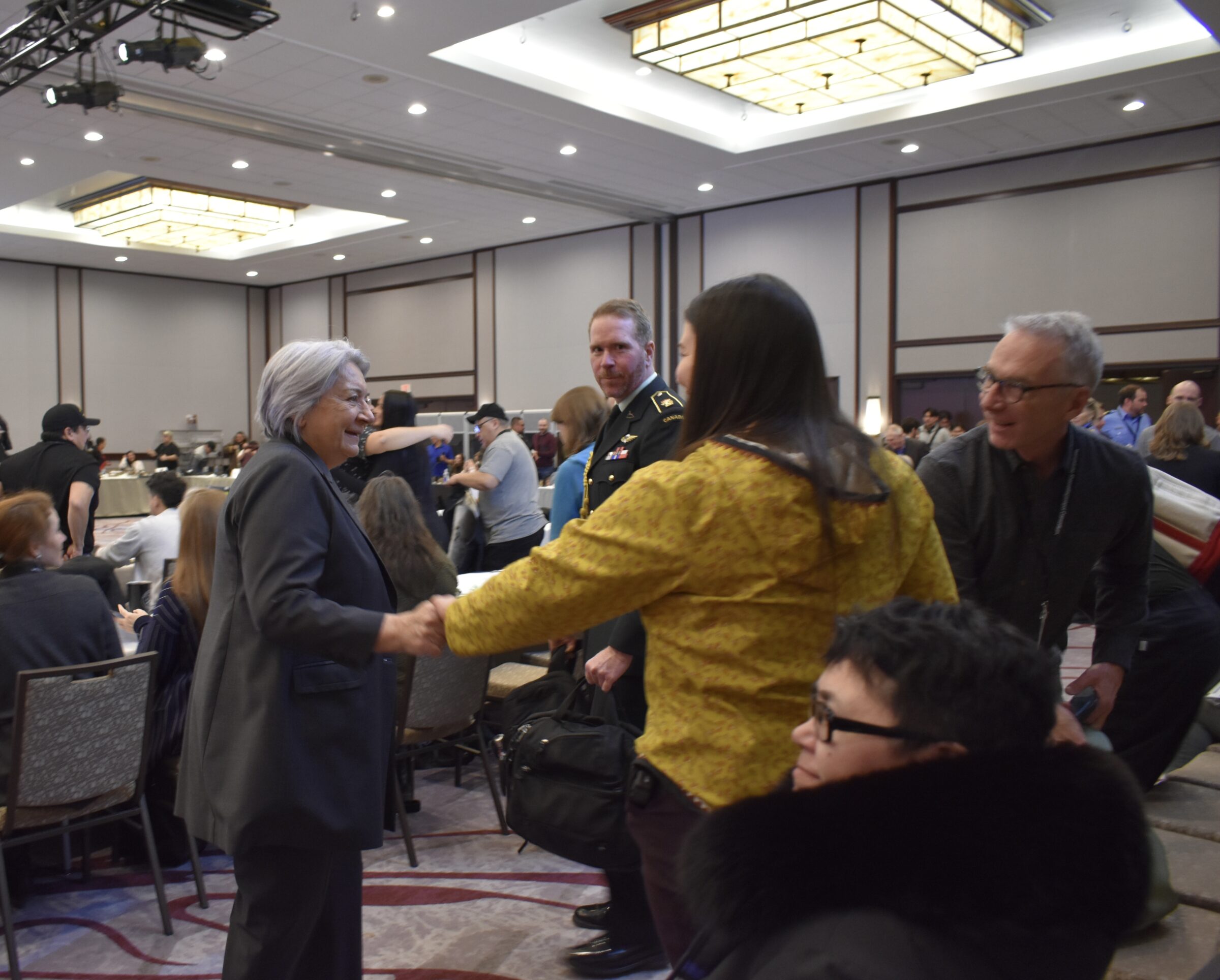 Gov. Gen. Mary Simon greets attendees Tuesday at the 2026 Hudson Bay Summit hosted by the Tasiujarjuaq Sheewetaganapoi Consortium in Ottawa after delivering her opening remarks. Communities around Hudson Bay and James Bay will get to discuss regional priorities during the three-day summit. (Photo by Nehaa Bimal)