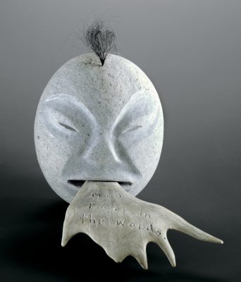 Mattiusi Manukuluk Iyaituk (born in 1950), Much Power in the Words, 2005, granitic gneiss, caribou antler, muskox hair, 19 x 26.5 x 30 cm. MMFA, purchase, the Canada Council for the Arts’ Acquisition Assistance Program and the Serge Desroches Bequest. Photo MMFA, Christine Guest