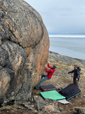 “There’s bouldering, where you don’t go high off the ground and use crash pads for safety, and there’s lots of opportunity for that around Iqaluit.”