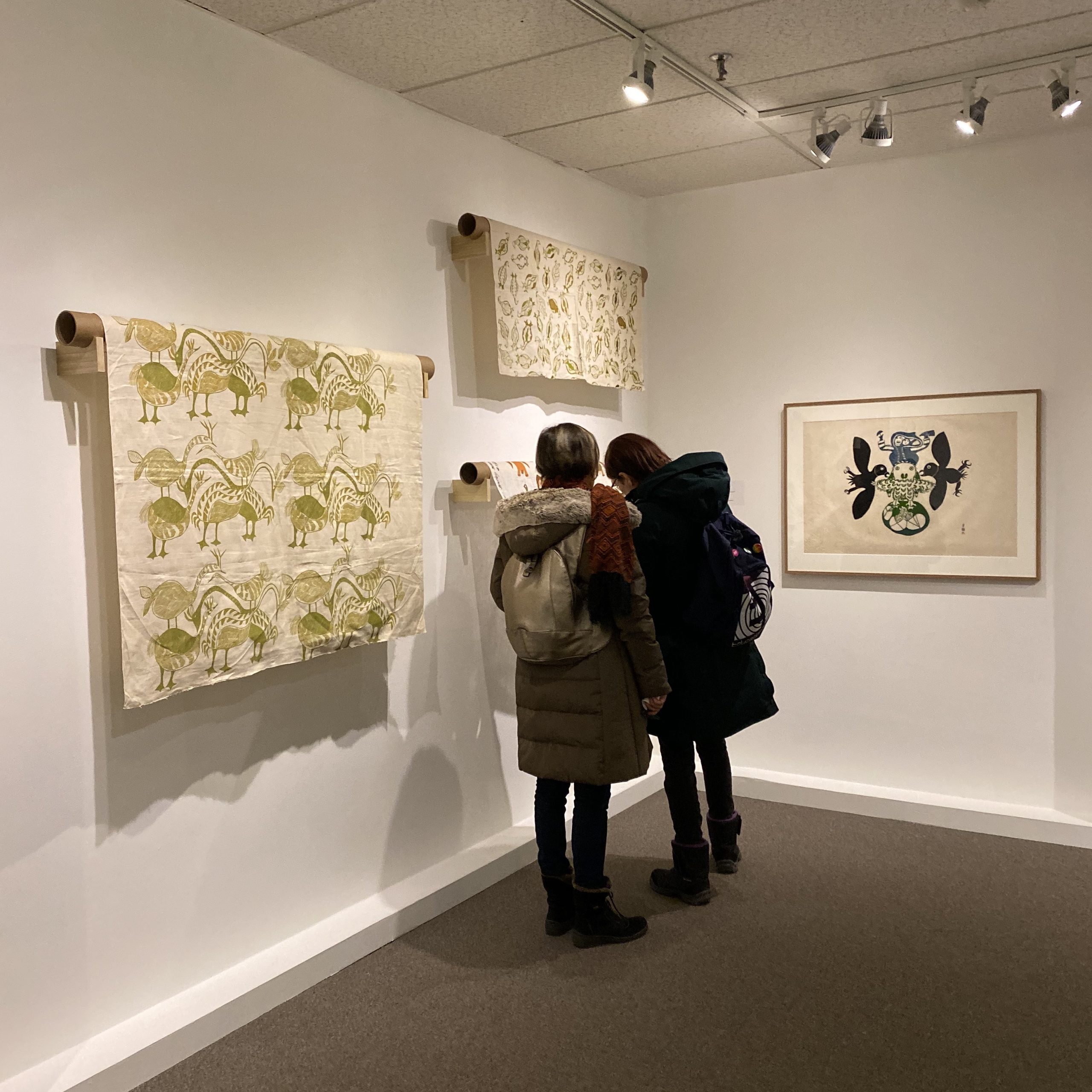 Visitors take in the Textile Museum of Canada’s exhibit “Printed Textiles from Kinngait Studios” in December 2019, just before the pandemic forced the closure of the museum. (Photo courtesy of Textile Museum of Canada)