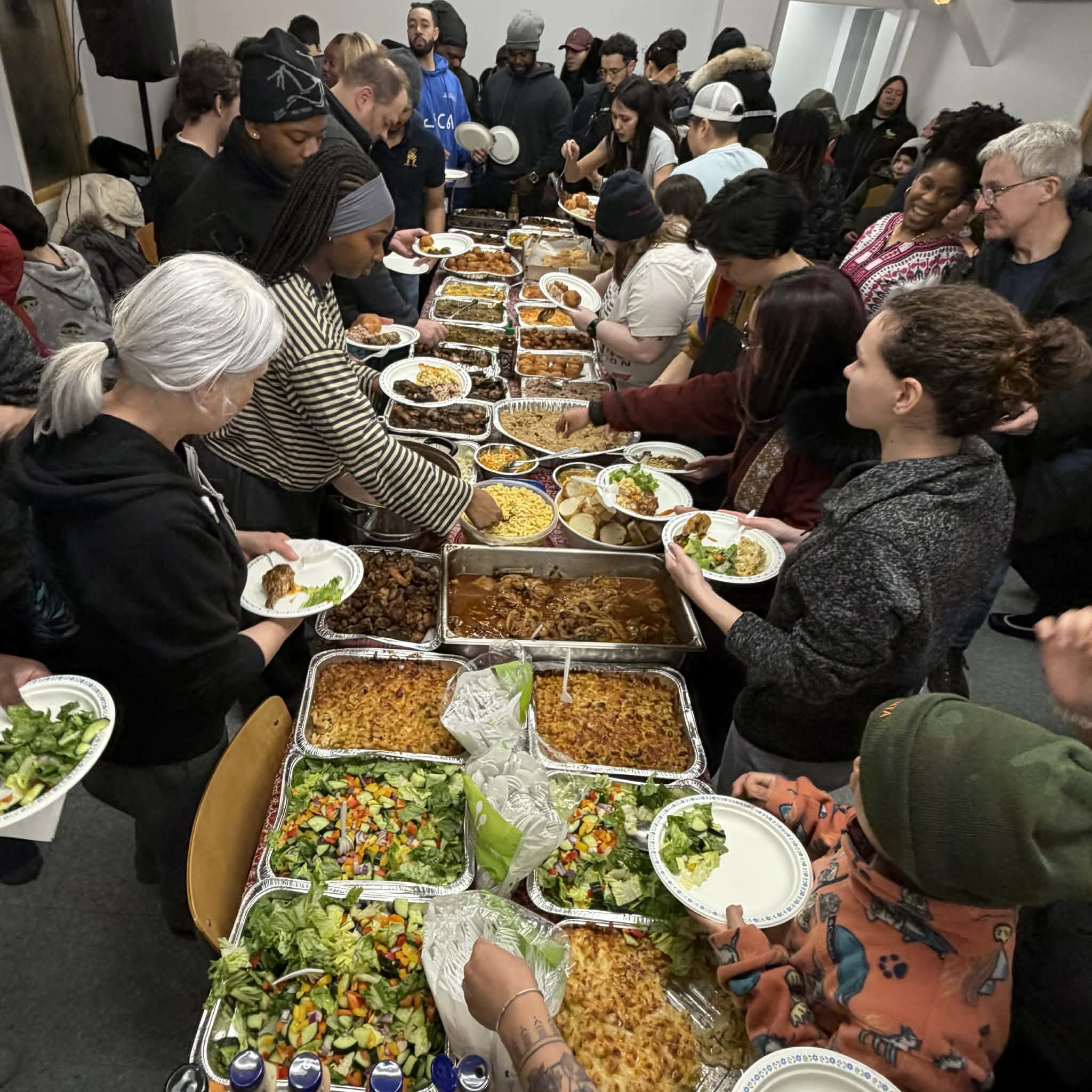 Kuujjuaq closes out Black History month with a community feast. Organized by Jephthé Sylvestre and Hannah Gordon, this first-of-its kind event brings Black, Inuit, and other residents together on Feb. 28 at the Notre Dame de Fatima Roman Catholic Church to celebrate Black identity and culture through food and music. (Photo by Isabelle Dubois, special to Nunatsiaq News)