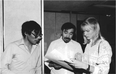From left to right, John Allupalik, Donat Milortok and Susan Black in Fall 1988. (Photo courtesy of Nunavut Tunngavik Inc.)
