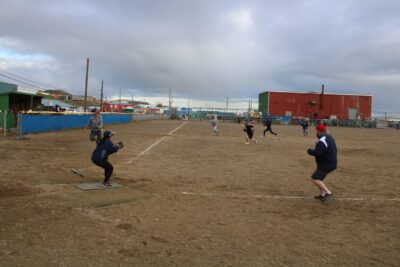 Canadrill and NuBrew softball teams battle on the Iqaluit ball diamond in 2023. The city is planning an upgrade for the ballpark, to be ready next year. (File photo by David Lochead)