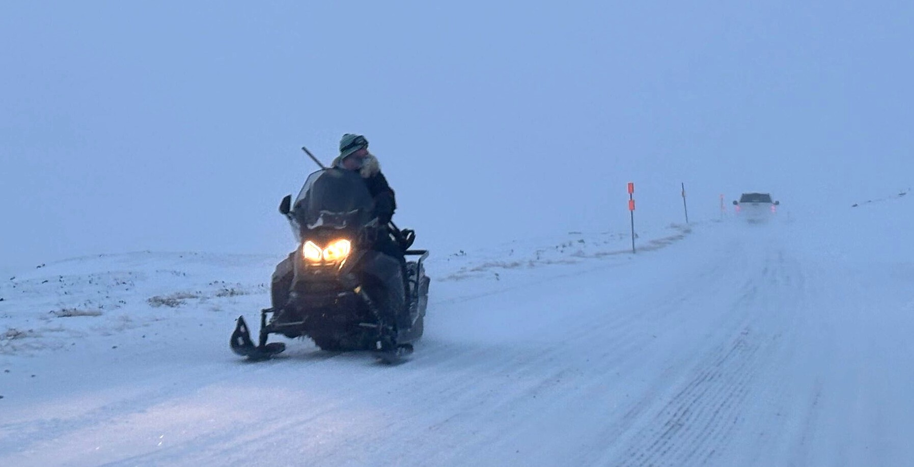 An unidentified snowmobiler, armed with a rifle, patrols the Plateau area of Iqaluit, where a polar bear sighting was reported Wednesday afternoon. Nunavut’s wildlife office says conservation officers searched the area but found no signs of a bear. (File photo by Daron Letts)