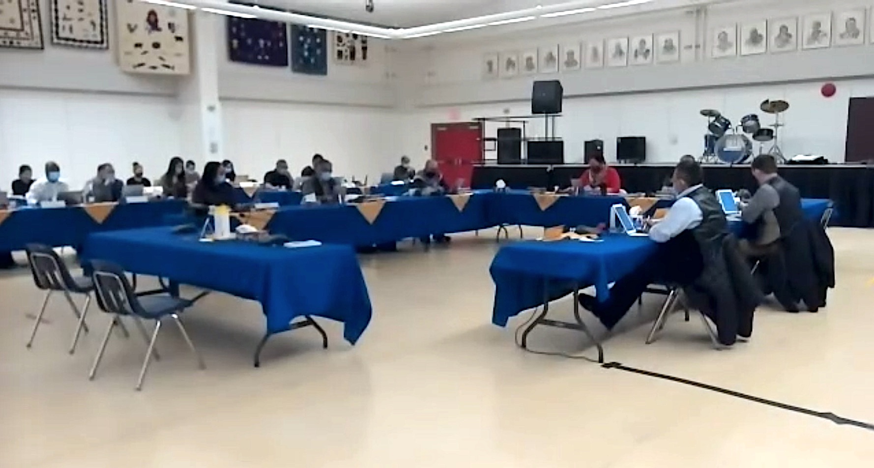 The board of Nunavut Tunngavik Inc. discusses changes in the timing of the National Inuit Health Survey, slated to start later this year. The NTI board of directors meeting continues Thursday in Baker Lake. (Screen shot from NTI livestream)