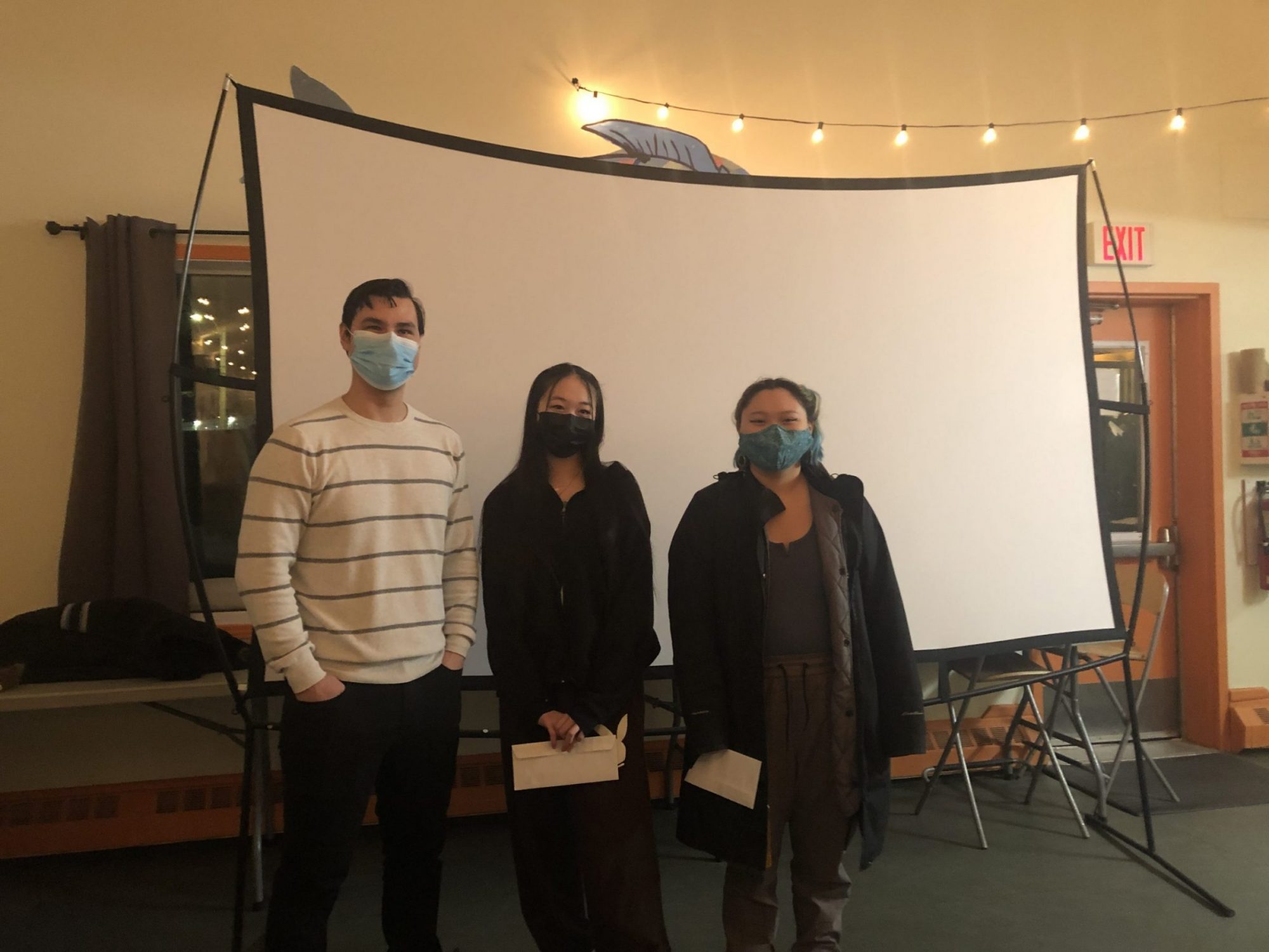 From left: David Korgak, Jasmine Evic and Blake DeMaio are seen after their screening of a short film they created on suicide prevention in Nunavut. (Photo by David Lochead)