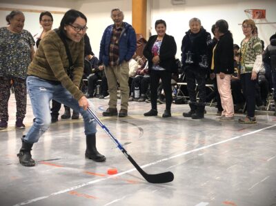 The event was “major fun,” said Atsina Uniuqsaraq, who participated in the seniors slapshot tournament. She didn’t win a prize, but her smile suggested that didn’t matter.