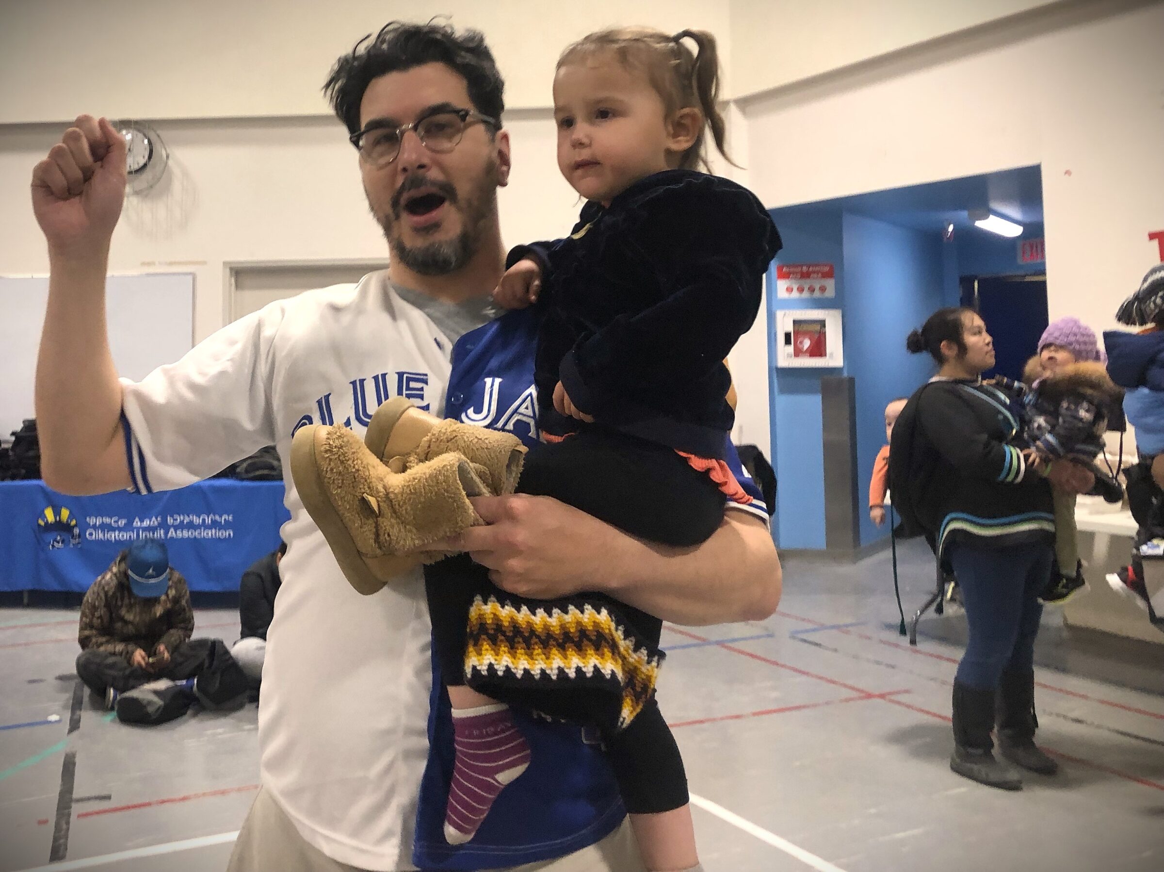 “It is so nice to see everyone gathering,” said Robert Mark, in between sharing bouncy dances with his daughter, Marla Mark, 2. “This is what Nunavut is all about — community.”