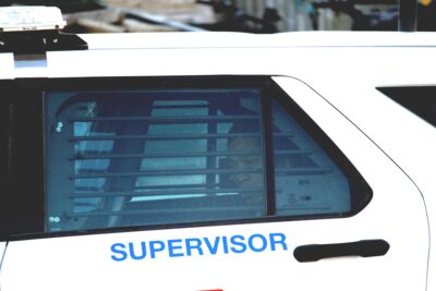 At 4:20 p.m., a man was seen in the back seat of a police vehicle, banging hard on the window, as police drove away.