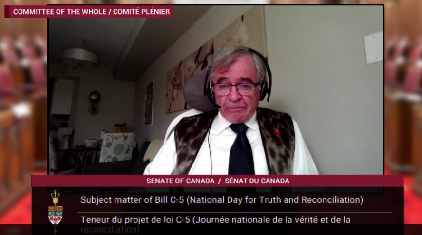 Nunavut Senator Dennis Patterson, speaking during a Senate debate Thursday, compared Canada’s new National Day for Truth and Reconciliation to Remembrance Day because they both emerged from Canadians’ desire to reflect on problems that have plagued society. (Screenshot courtesy of Senate ParlVU)