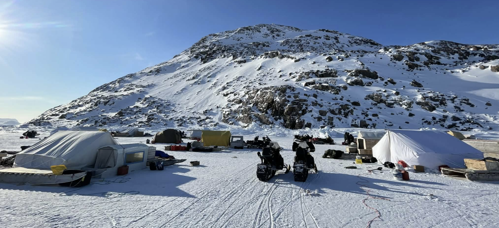 Along the way, the wind started blasting the snowmobile drivers as they reached the sea ice at the mouth of Mary River. The wind blew all night and even knocked over a tent.