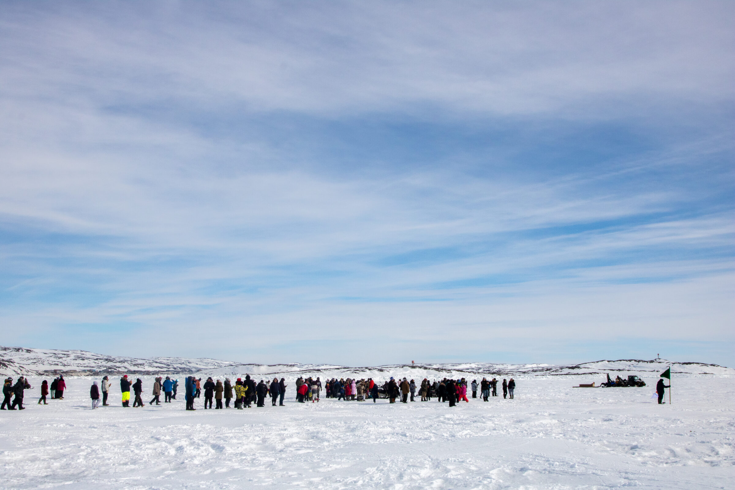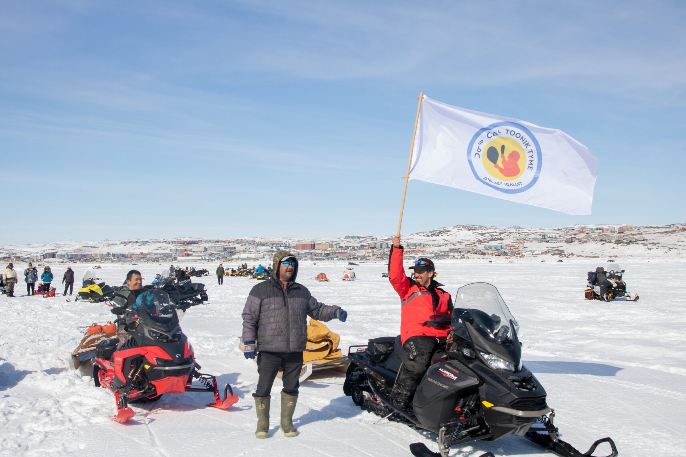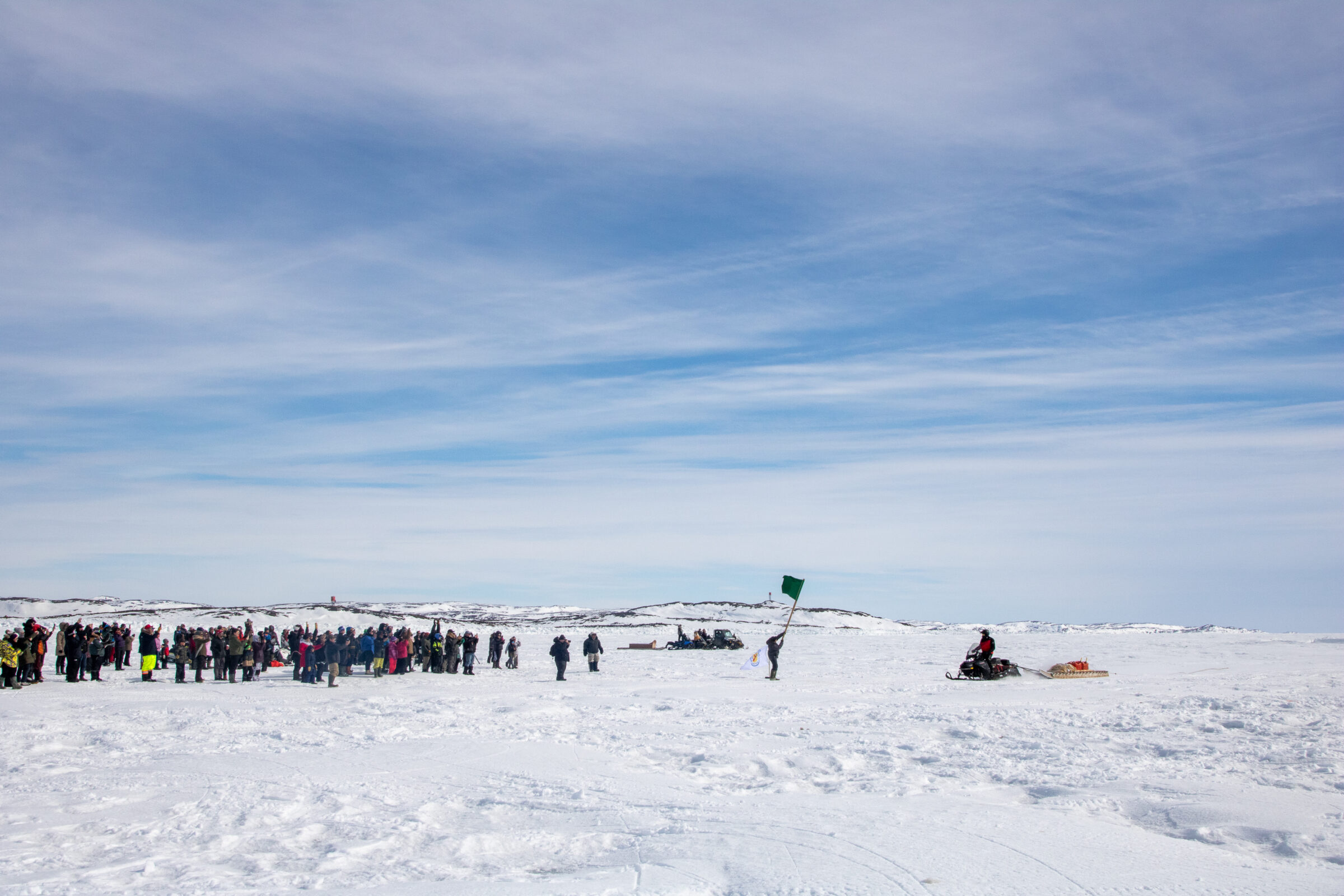 The race, held on the last day of Toonik Tyme, Iqaluit’s spring festival, has snowmobilers pull a qamutik loaded up with hunting gear.