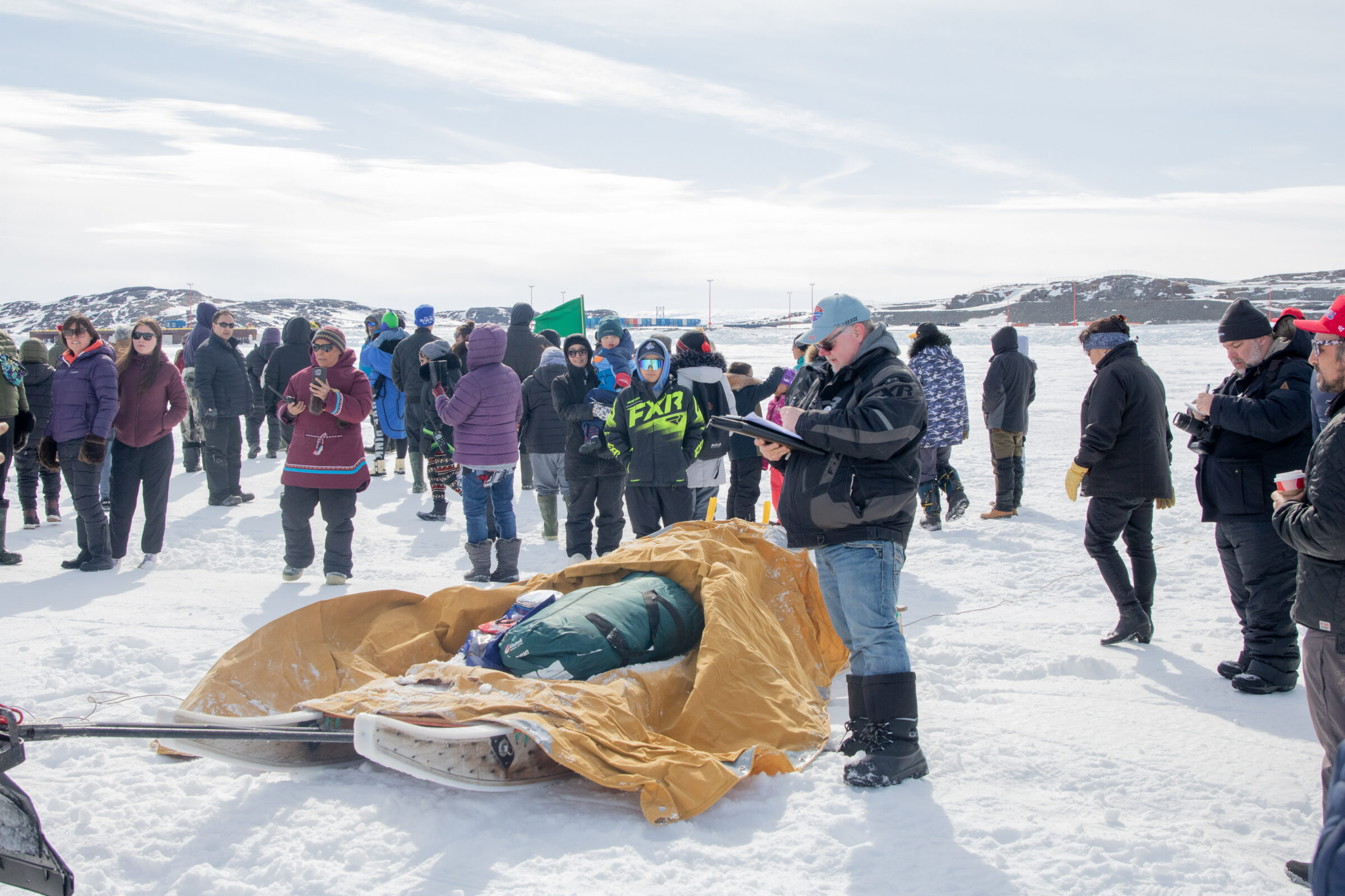 Perry Akavak from Pangnirtung won the festival’s annual 240-kilometre Iqaluit-Kimmirut race, roaring across the finish line after about four hours and six minutes with a fully-loaded qamutik in tow.