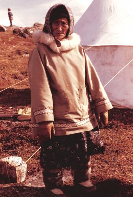 Iquginnaq, the survivor of many ordeals, stands in 1982 at her family’s camp beside Ferguson lake, southeast of Baker Lake. (Photo courtesy of David Pelly)