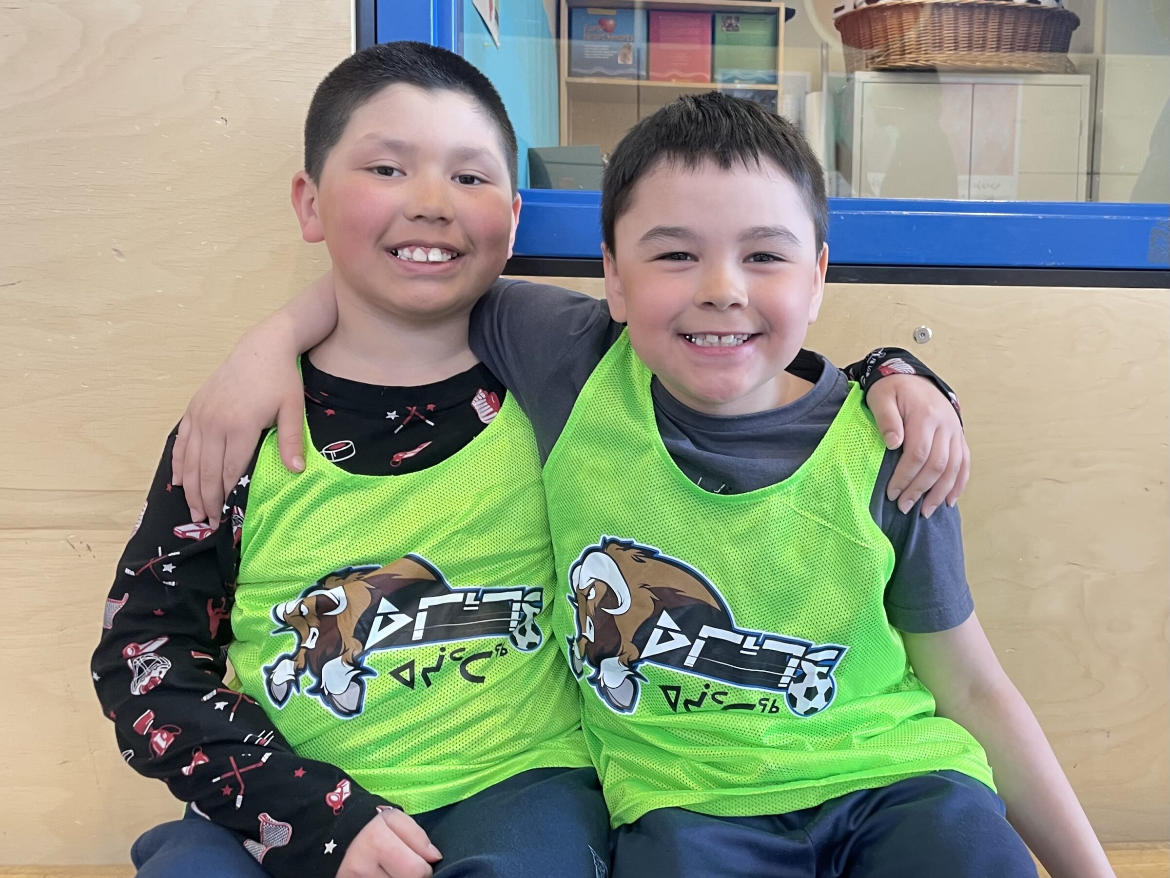 Cowen Lingard, left, and Landon Gordon, are among the players preparing for Friday’s Ungava Cup futsal soccer tournament at Jaanimmarik School in Kuujjuaq. (Photo by Dominique Gené)