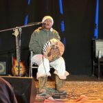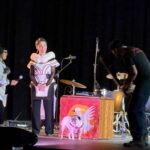 Susánna Herálvsdóttir, left, and Aske Mattias Folkmann perform at the Qajuqturvik Community Food Centre in Iqaluit on Thursday. They are two of several Arctic musicians taking part in the 2025 Pan-Arctic Vision concert in Iqaluit on Nov. 29. “It’s so cool to share our music in a soup kitchen,” Herálvsdóttir said as some of the about 60 guests ate chicken noodle soup while enjoying the music. (Photo by Arty Sarkisian)