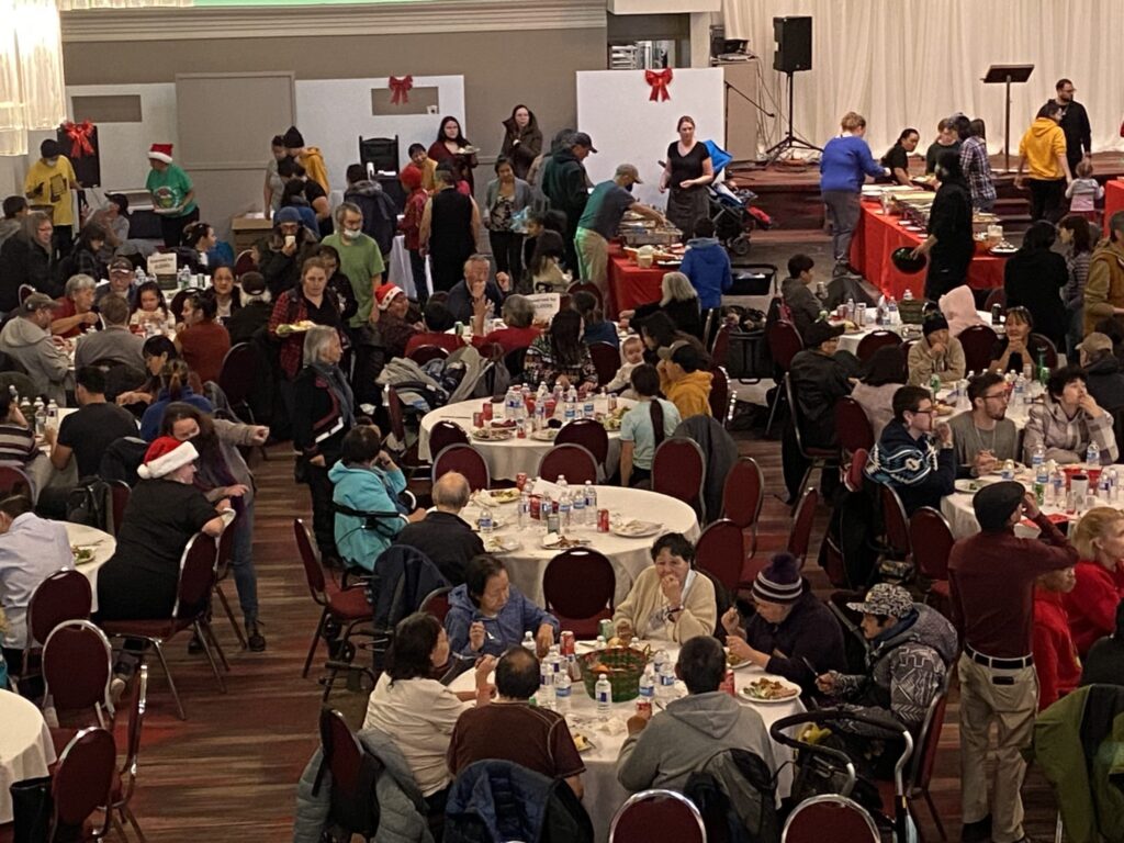 Inuit come together at a Christmas gathering in 2022 at St. Anthony’s Banquet Hall, hosted by Inuuqatigiit Centre, Tungasuvvingat Inuit, and Inuit Tapiriit Kanatami. This year, the in-person event has been cancelled. Instead, Tungasuvvingat Inuit is hosting virtual holiday activities along with Christmas hampers for families. (File photo by Andrea Sakiyama Kennedy)