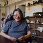 Rita Pigalak, left, and Wilma Pigalak pick cranberries and blueberries for tea and muffins on a hill just south of Kugluktuk on Sunday. The tundra is so bursting with fall colours that it looks almost like the prairies in the old westerns, Rita said. “The only thing that’s missing is a cowboy on a horse,” she joked. (Photo by Arty Sarkisian)