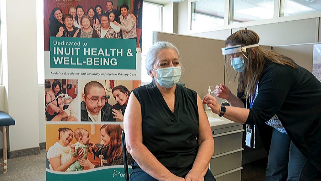 Gov. Gen. Mary Simon, seen here getting her COVID-19 vaccine in March 2021, announced on Twitter on Wednesday that she has tested positive for COVID-19. (File photo courtesy of Akausivik)