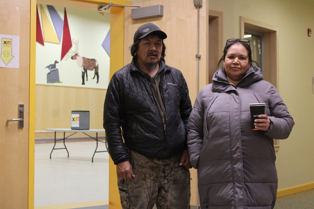 Qikiqtarjuaq Arctic Co-op employees Lasaloosie and Monica Kukseak are among the last people voters in Monday’s Nunavut territorial election at Qikiqtarjuaq’s sole polling station. Voters went to the community hall before it shut down for the day at 7 p.m. In the riding of Uqqummiut the choice is between incumbent Mary Killiktee and challenger Gordon Kautuk. There is no specific issue that’s important to Kukseaks, but they feel like all citizens “must” vote in every election, Monica Kukseak says. (Photo by Arty Sarkisian)